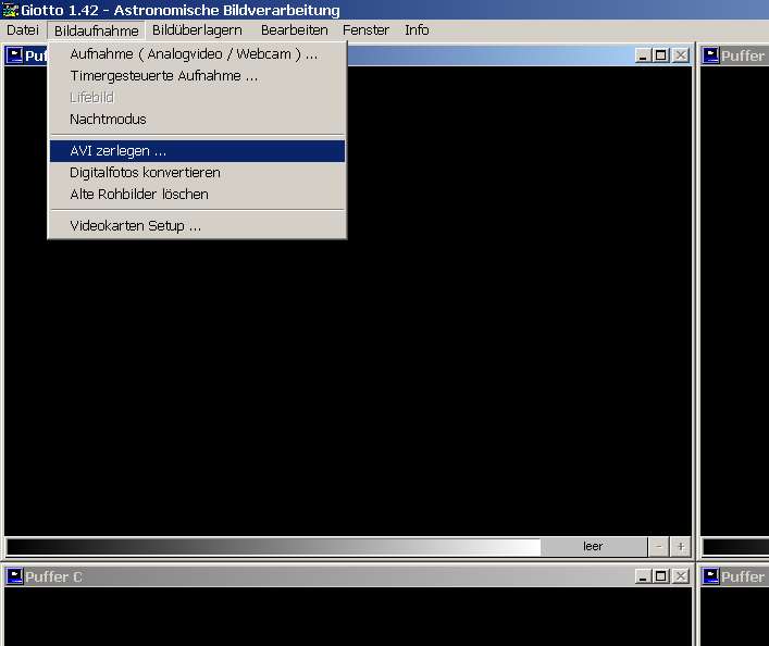 | Als erstes zerlege ist mit Giotto das AVI in einzelne BMP Dateien. |