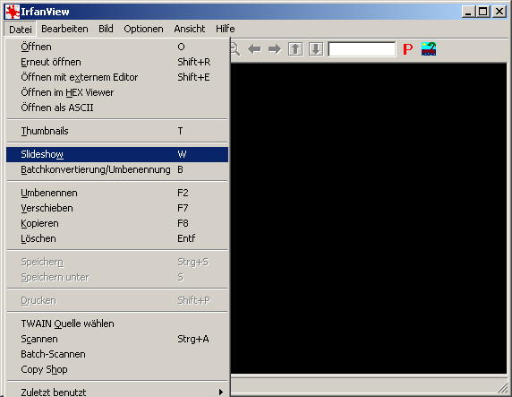 | Im Programm IrfanView startet man den Slideshowmodus: |