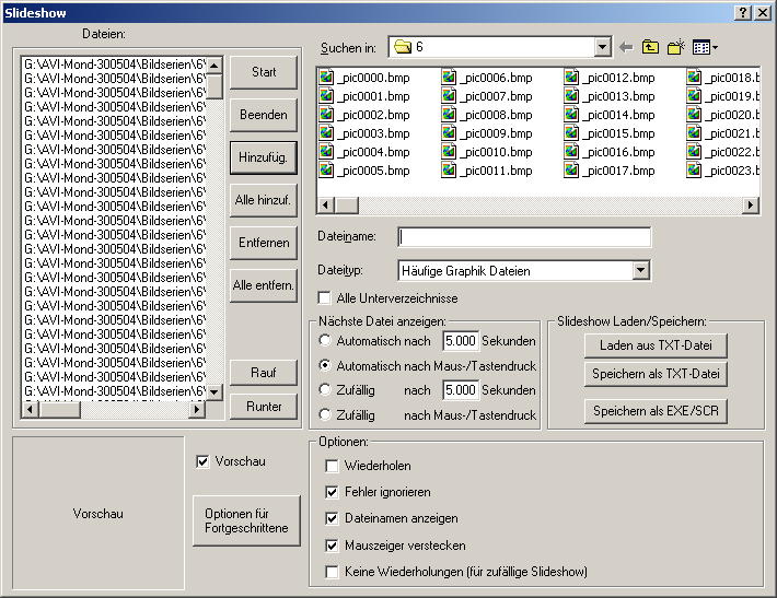 | mit Auswahl das richtige Verzeichnis wahlen und das erste Bild anklicken.