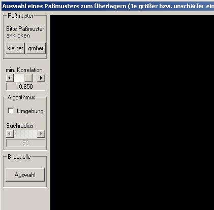 | Jetzt das ganze mit den eigentlichen Bildern aber anderen Einstellungen: Bei Vorbehandlung kommt jetzt das Darkframe rein Bei Zentriermethode - Nachgeführtes Passmuster suchen Bei Subpixelgenauigkeit hängt es vom Rechner hab, was man da einstellen möchte. Einfach ausprobieren, aber es hat direkten Einfluß auf die Rechengeschwindigkeit! Und es wird wieder gemittelt. Dann auf vorherige Einstellungen klicken und das richtige Verzeichnis bei Auswahl auswählen. Dann das erste Bild anklicken, das dann auch erscheint. |