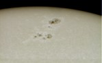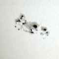 sehr große Sonnenfleckengruppe. Aufgenommen mit dem 102/1000 Refraktor und der Webcam auf dem 2. ATB 2004. 1800 Bilder gemittelt mit Giotto Dieses Foto ist sogar in der englischsprachigen Ausgabe der Wikipedia veröffentlicht! |