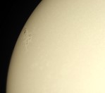 Sonne im Sommer 2003. Aufgenommen mit der G2, 25mm Ortho-Okular, Blende 3,5 Zeit 1/1000s Teleskop Skywatcher 102/1000 mit Baader Sonnenfolie | |