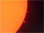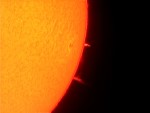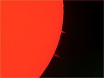 Mein erstes H-Alpha Bild! Dank Manfred Velte durfte ich auf dem ATB 2012 den vereinseigenen Solarmax 90 für ein paar Minuten benutzen um meine ersten HA Bilder zu machen. Natürlich sind das noch keine Meisterwerke, aber erst mal bin ich zufrieden, zumal ich ja noch nicht wußte wie man das alles am besten einstellt. |