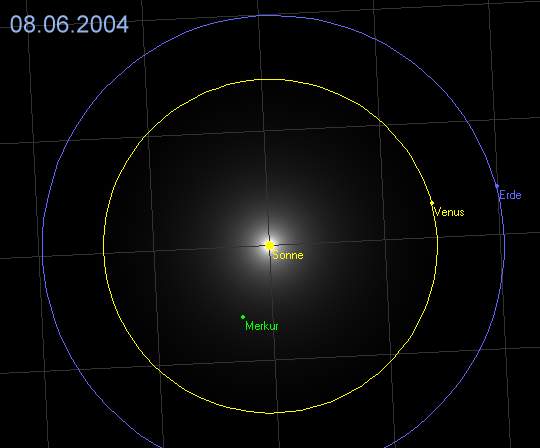 von der Erde sieht das dann so aus, als ob die Venus über die Oberfläche der Sonne läuft. |